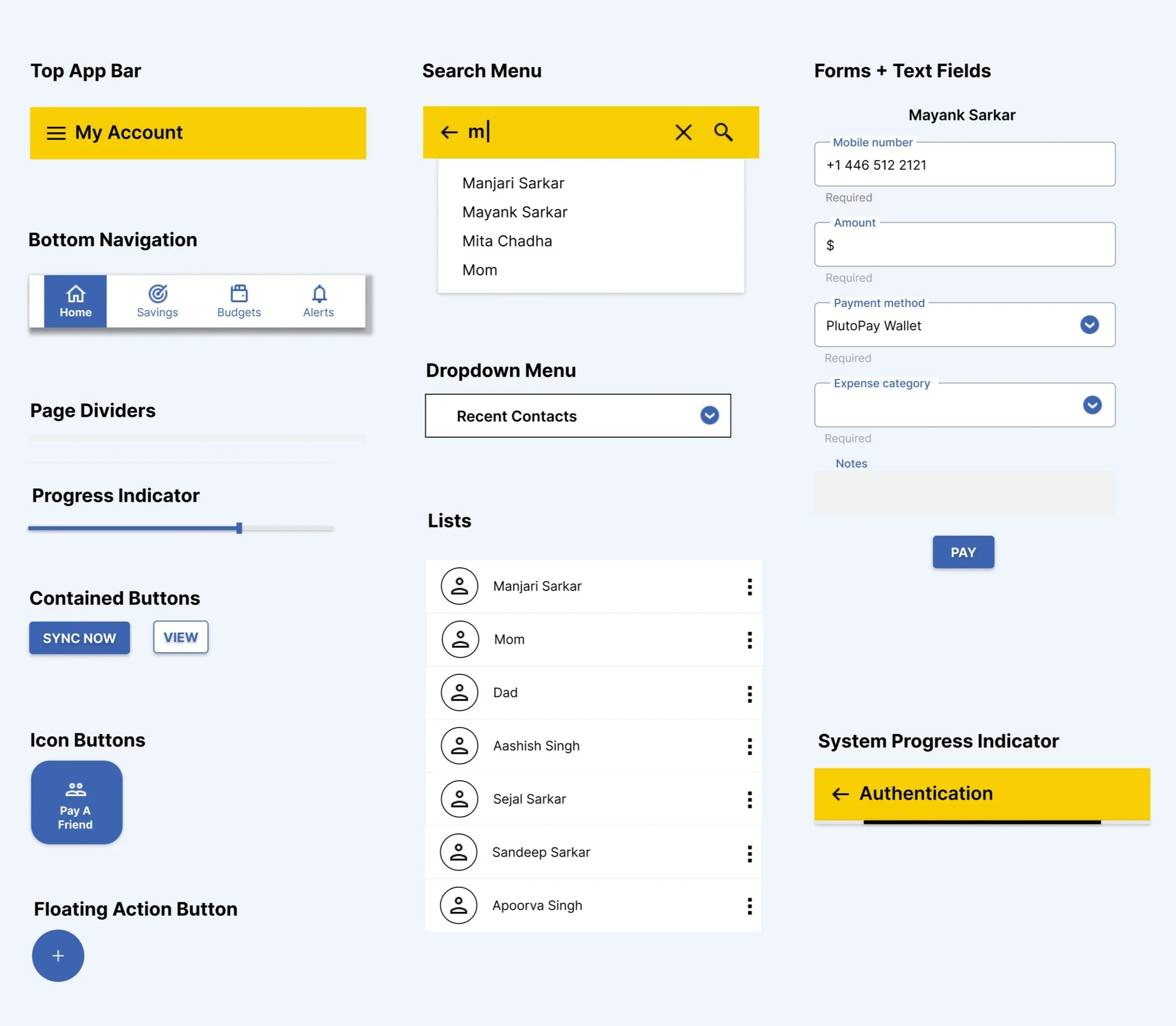 As PlutoPay is a mobile-first design, I sketched screens of the user flow which then evolved into a mid-fidelity prototype.